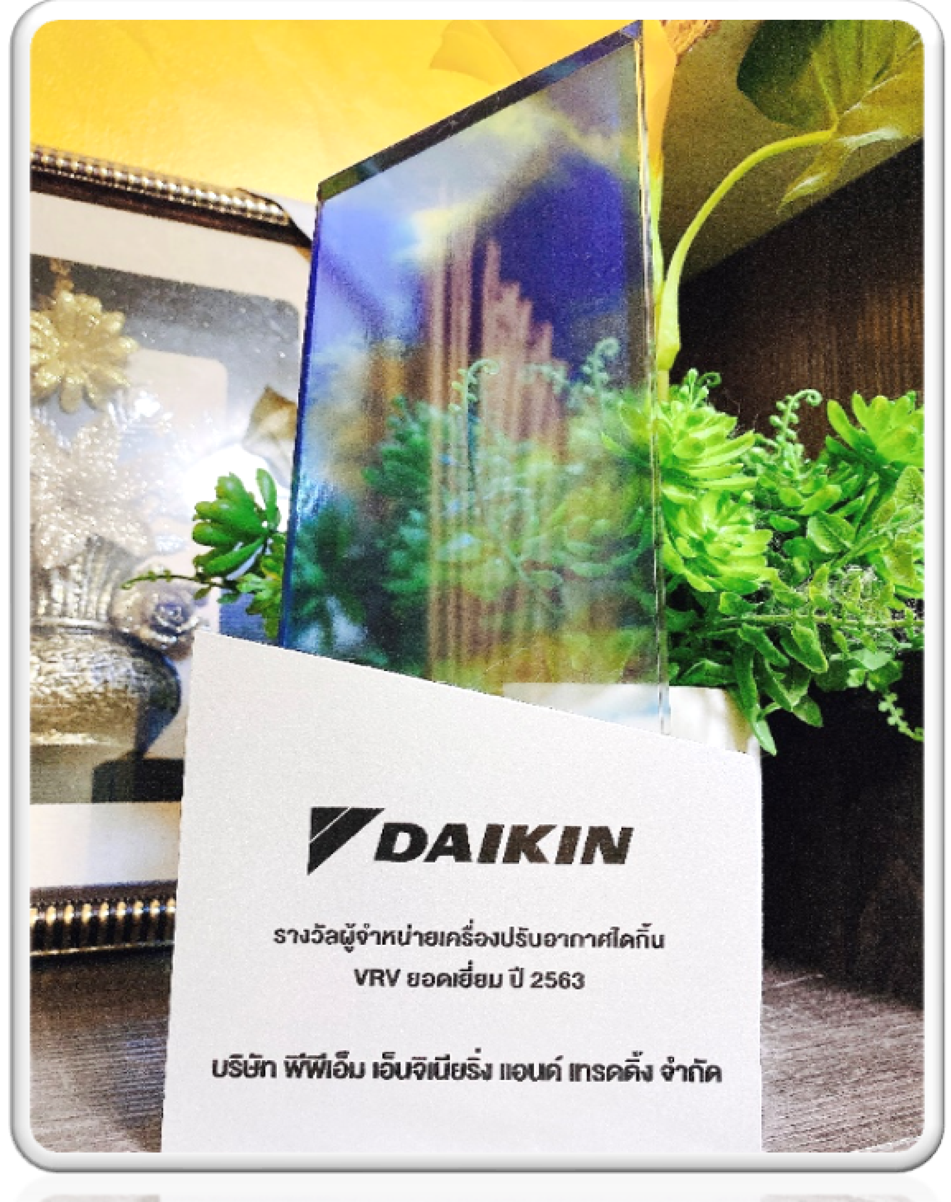 อีกหนึ่งความภาคภูมิใจ กับรางวัลพิเศษแห่งปี จาก บริษัท สยามไดกิ้นเซลส์ จำกัด ผู้จัดจำหน่ายเครื่องปรับอากาศและให้บริการ ภายใต้เครื่องหมายการค้า ไดกิ้น แต่เพียงผู้เดียวในประเทศไทย